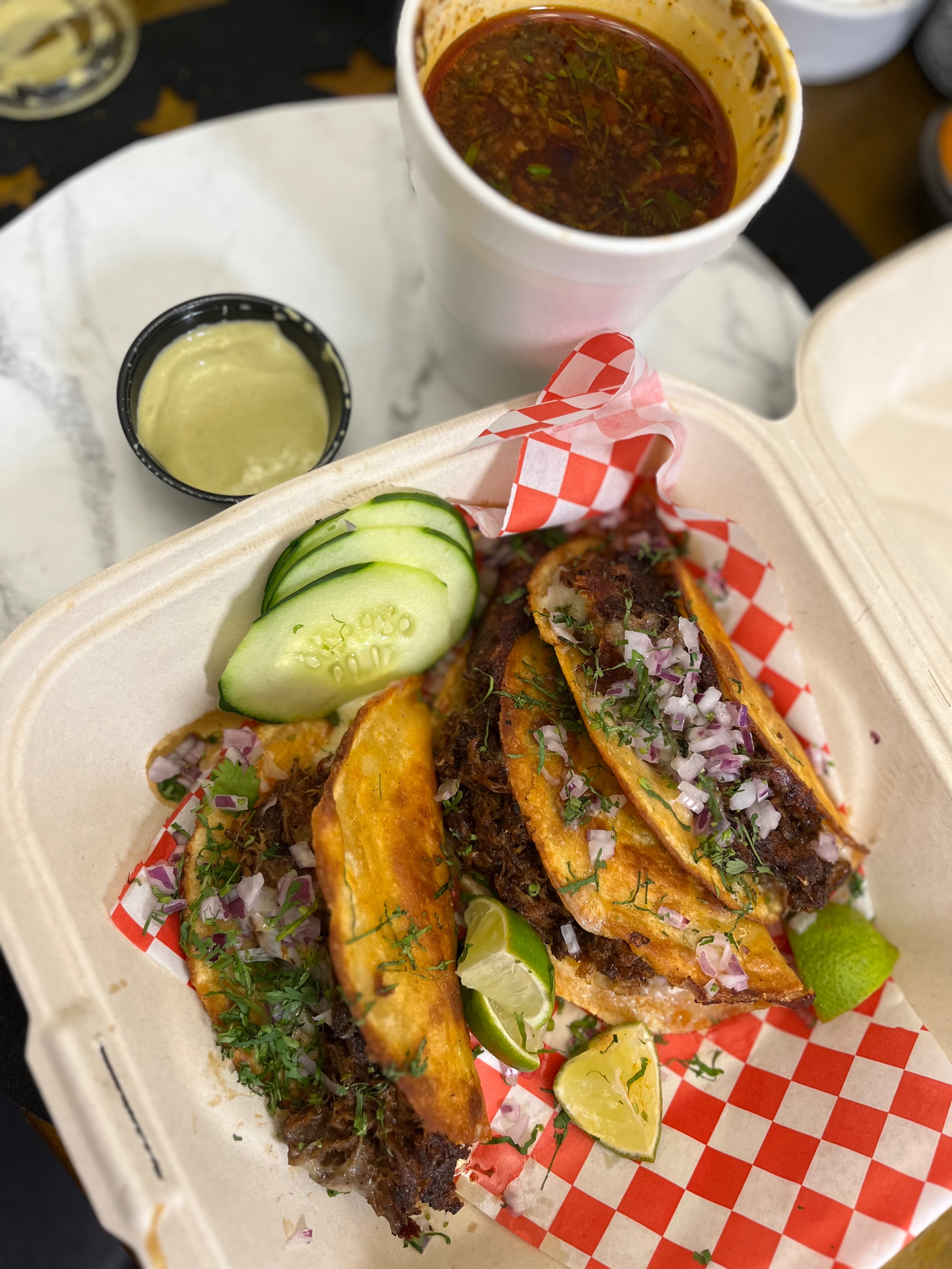 The menu features a variety of mouth-watering selections, all prepared with care. Whether you prefer classic birria or something with a twist, there's something for everyone. If you’re looking to unwind after a long day, their happy hour offers great deals that make it easy to enjoy a bite and relax.
